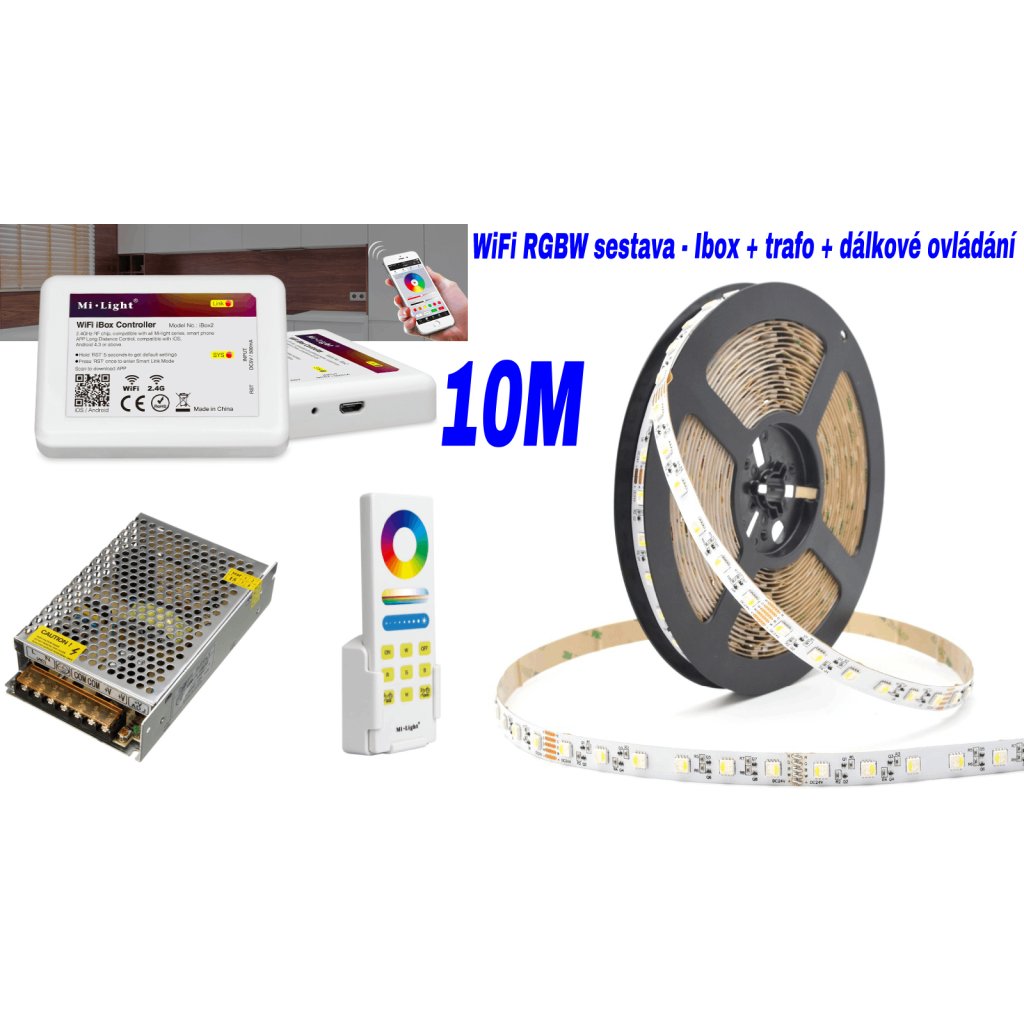 10m RGBW sestava z LED pásků rozšířená o WiFi modul pro možnost ovládat osvětlení pomocí mobilní aplikace, ale současně i ovladačem. Na výběr jsou 3 varianty bílého světla: RGB + denní bíláRGB + teplá bíláRGB + studená bíláV sestavě je použit speciální hybridní 24V RGBW pásek, který může být napájen vcelku z jednoho místa bez poklesu svítivosti - už žádné zesilovače signálu! Tímto se zásadně zjednoduší a urychlí instalace, kterou zvládne naprosto každý. Navíc dodávané nacvakávací rohové spojky usnadní, mnohdy problematické, rohové spojení RGBW pásků!Sestavu lze případně rozšířit i o nástěnný dálkový ovladač MLB0.Klíčové vlastnosti:snadná instalace nalepením a jednoduché zakrácení LED pásky nůžkami po 10cmspeciální RGBW pásek HYBRID - instalace bez použití zesilovače signálu!!!kvalitní RF ovládání Mi-LIGHT s možností stmívání, změny barev a volby efektůWiFi WL-BOX pro ovládání přes mobilní aplikacisestava je Ready to Light - vše do sebe pouze zapojíte a svítíte bez nutnosti pájeníSestava obsahuje:10m RGBW LED pásku HYBRID 12W/m, 60LED/m, IP20 - vnitřní - pásek je dodáván vcelkuWiFi WL-BOX Mi.LightMi-LIGHT radiofrekvenční dálkové ovládání s přijímačemoptimálně dimenzovaný průmyslový napájecí zdroj 230V/24Vnacvakávací rohové spojky Tipy a rady:Před finálním nalepením si celou sestavu nejprve složte "na nečisto" na zemi a až po otestování funkčnosti teprve instalujte na určené místoU drátových propojek se ujistěte, že kovové piny v konektoru správně dosedají na měděné plošky na LED pásce, jinak se může stát, že pásek bude za konektorem svítit jinou barvou nebo nebude svítit vůbec.Doporučujeme RGBW pásek nalepit do ALU profilu a zakrýt mléčným difuzorem. Mléčný difuzor zajistí lepší rozptýlení světla a ochranu před prachem. ALU profil zas chlazení pásky a snazší instalaci než v případě nalepení přímo na SDK.