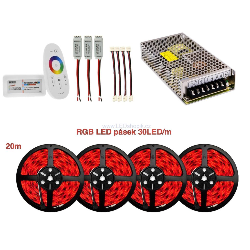 20m RGB LED sestava | 7,2W/m | 30LED/m | - 20m RGB LED sestava | 7,2W/m | 30LED/m | IP65 | pásek v gelu |