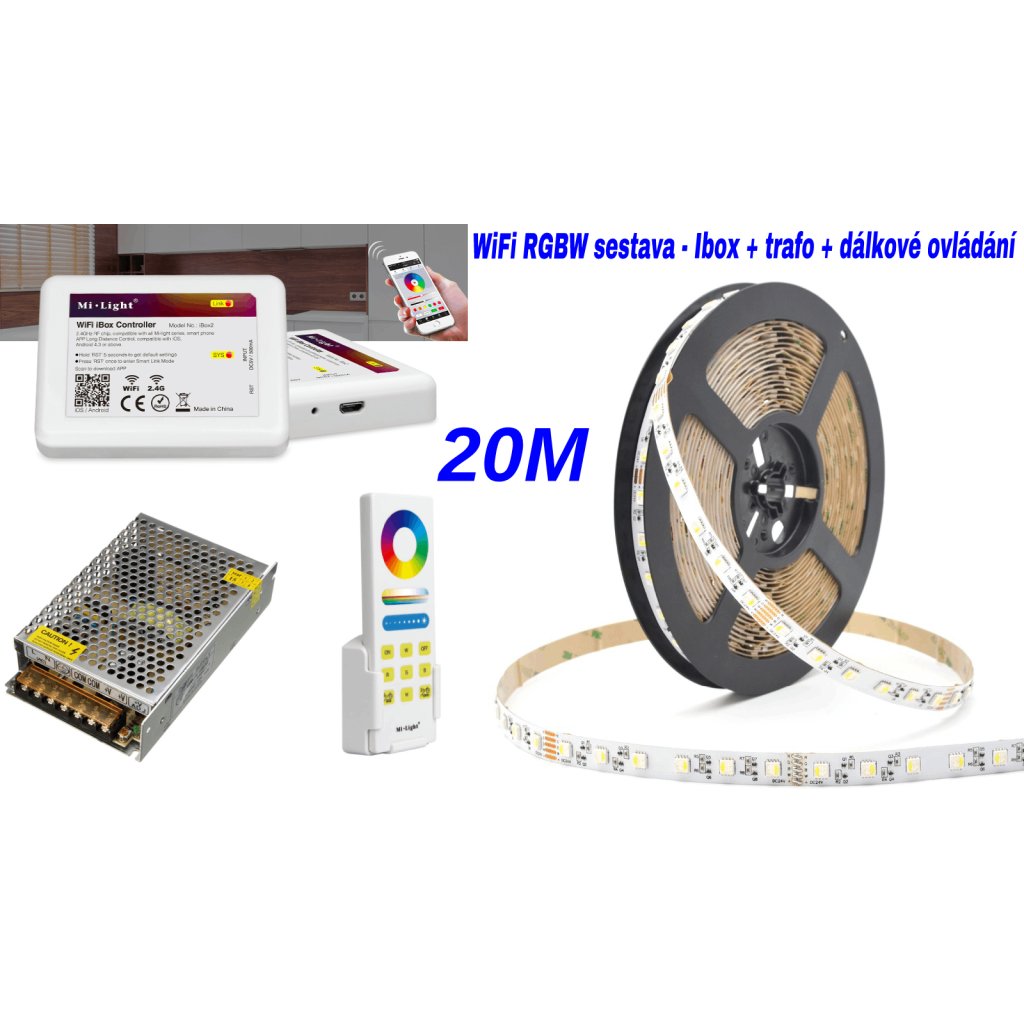 20m RGBW sestava z LED pásků rozšířená o WiFi modul pro možnost ovládat osvětlení pomocí mobilní aplikace, ale současně i ovladačem. Na výběr jsou 3 varianty bílého světla: RGB + denní bíláRGB + teplá bíláRGB + studená bíláV sestavě je použit speciální hybridní 24V RGBW pásek, který může být napájen vcelku z jednoho místa bez poklesu svítivosti - už žádné zesilovače signálu! Tímto se zásadně zjednoduší a urychlí instalace, kterou zvládne naprosto každý. Navíc dodávané nacvakávací rohové spojky usnadní, mnohdy problematické, rohové spojení RGBW pásků!Sestavu lze případně rozšířit i o nástěnný dálkový ovladač MLB0.Klíčové vlastnosti:snadná instalace nalepením a jednoduché zakrácení LED pásky nůžkami po 10cmspeciální RGBW pásek HYBRID - instalace bez použití zesilovače signálu!!!kvalitní RF ovládání Mi-LIGHT s možností stmívání, změny barev a volby efektůWiFi WL-BOX pro ovládání přes mobilní aplikacisestava je Ready to Light - vše do sebe pouze zapojíte a svítíte bez nutnosti pájeníSestava obsahuje:20m RGBW LED pásku HYBRID 12W/m, 60LED/m, IP20 - vnitřní - pásek je dodáván vcelkuWiFi WL-BOX Mi.LightMi-LIGHT radiofrekvenční dálkové ovládání s přijímačemoptimálně dimenzovaný průmyslový napájecí zdroj 230V/24Vnacvakávací rohové spojky Tipy a rady:Před finálním nalepením si celou sestavu nejprve složte "na nečisto" na zemi a až po otestování funkčnosti teprve instalujte na určené místoU drátových propojek se ujistěte, že kovové piny v konektoru správně dosedají na měděné plošky na LED pásce, jinak se může stát, že pásek bude za konektorem svítit jinou barvou nebo nebude svítit vůbec.Doporučujeme RGBW pásek nalepit do ALU profilu a zakrýt mléčným difuzorem. Mléčný difuzor zajistí lepší rozptýlení světla a ochranu před prachem. ALU profil zas chlazení pásky a snazší instalaci než v případě nalepení přímo na SDK.