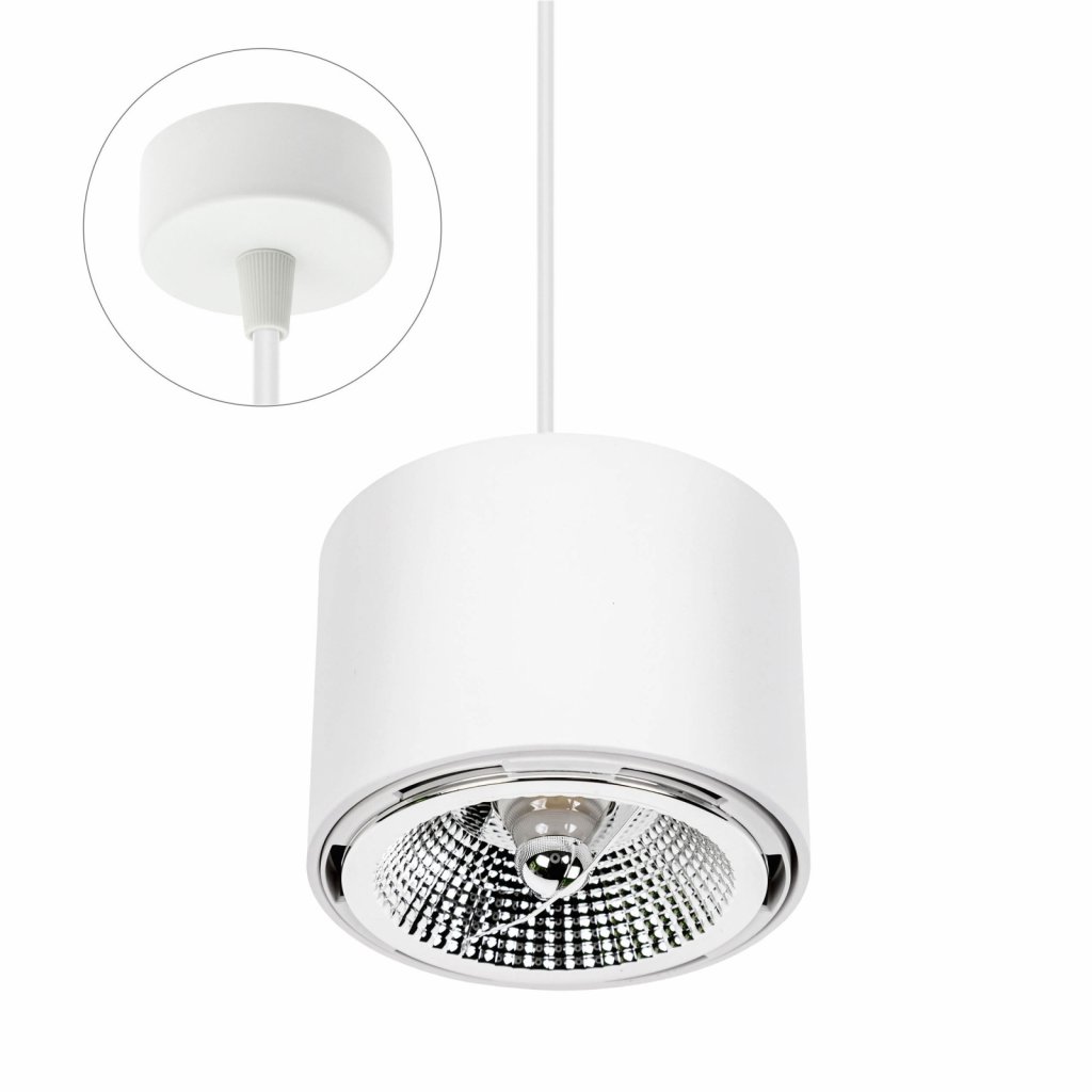 CHLOE AR111 POVRCHOVÁ MONTÁŽ GU10 250V IP20 120X85MM BÍLÁ KULATÁ PEVNÁ PATKY KULATÝ KABEL 1,5M