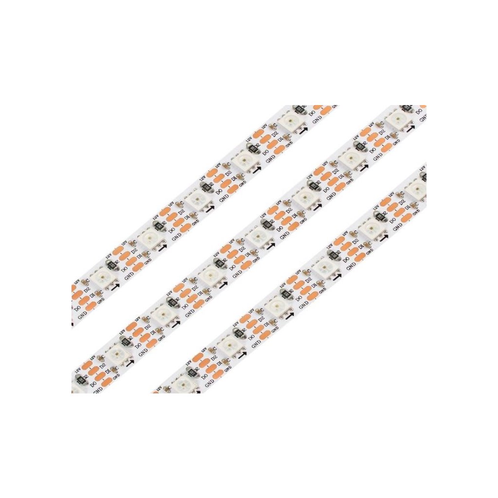 Digitální RGB pásek 12V řízený čipem GS8208, který je vestavěn přímo do diody. Výkon pásky je 14,4W/m a je osazen 60LED/m.Každá dioda je samostatně řiditelná: 1 LED = 1 pixelGS8208 je nový čip, který vyniká svoji stabilitou a napájením DC 12V s možností řídit každou diodu samostatně. Jeho další předností je integrovaná paměť, do které lze ukládat vlastní efekty. Takže lze spouštět tyto efekty i bez použití kontroleru.Pásek má dvojitý přenos signálu, který v případě chybné LED na pásku dále přenáší signál a ostatní LED dále správně fungují.K ovládání těchto pásků slouží speciální ovladače nebo PC software v kombinaci s řídící jednotkou. Pásek je kompatibilní např. s ovladači pro pásky s čipy UCS1903 nebo WS2811.Klíčové vlastnosti:možnost řídit každou diodu samostatněnapájení DC 12Vdvojitý přenos signálupásek lze zakrátit každou dioduzákladní efekty uloženy přímo do paměti čipukvalitní vestavný řídící čip GS8208 na 12V DCTipy a rady:Před finálním nalepením si pásek otestujte "na nečisto" a až po otestování funkčnosti teprve instalujte na určené místo
