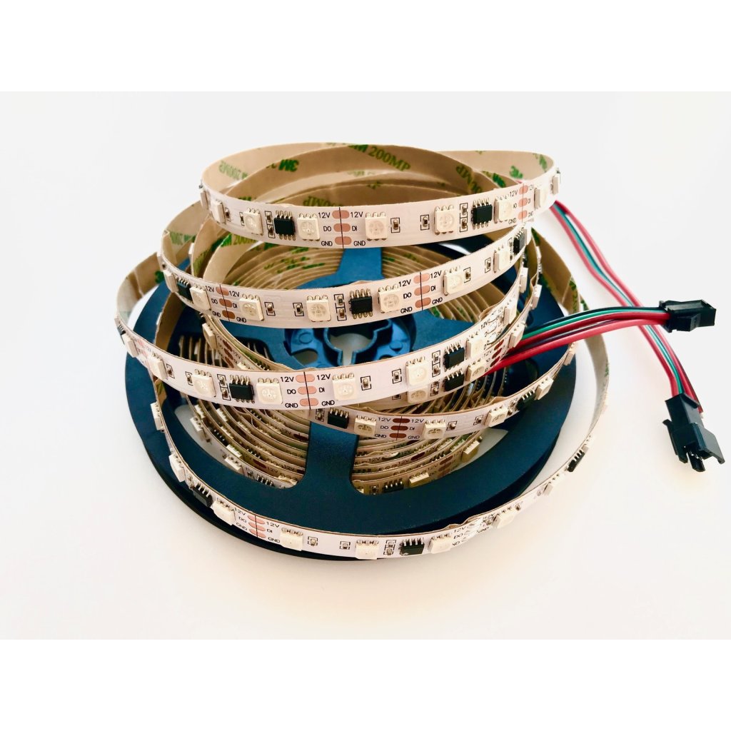 Digitální RGB pásek 12V s IC WS2811 o výkonu 14,4W/mLED pásek je osazen 60ks RGB diod a současně 20ks obvodu WS2811, takže lze každý segment na pásce (3 diody) individuálně řídit. K ovládání těchto pásků slouží speciální ovladače nebo PC software v kombinaci s řídící jednotkou. Klíčové vlastnosti:snadná instalace nalepením a jednoduché zakrácení LED pásky nůžkami po 5cmkrytí pásky IP20 - pro vnitřní použitíspeciální DIGI pásek s velkým množstvím speciálních efektůkvalitní řídící chip WS2811 na 12V DCTipy a rady:Před finálním nalepením si pásek otestujte "na nečisto" a až po otestování funkčnosti teprve instalujte na určené místo