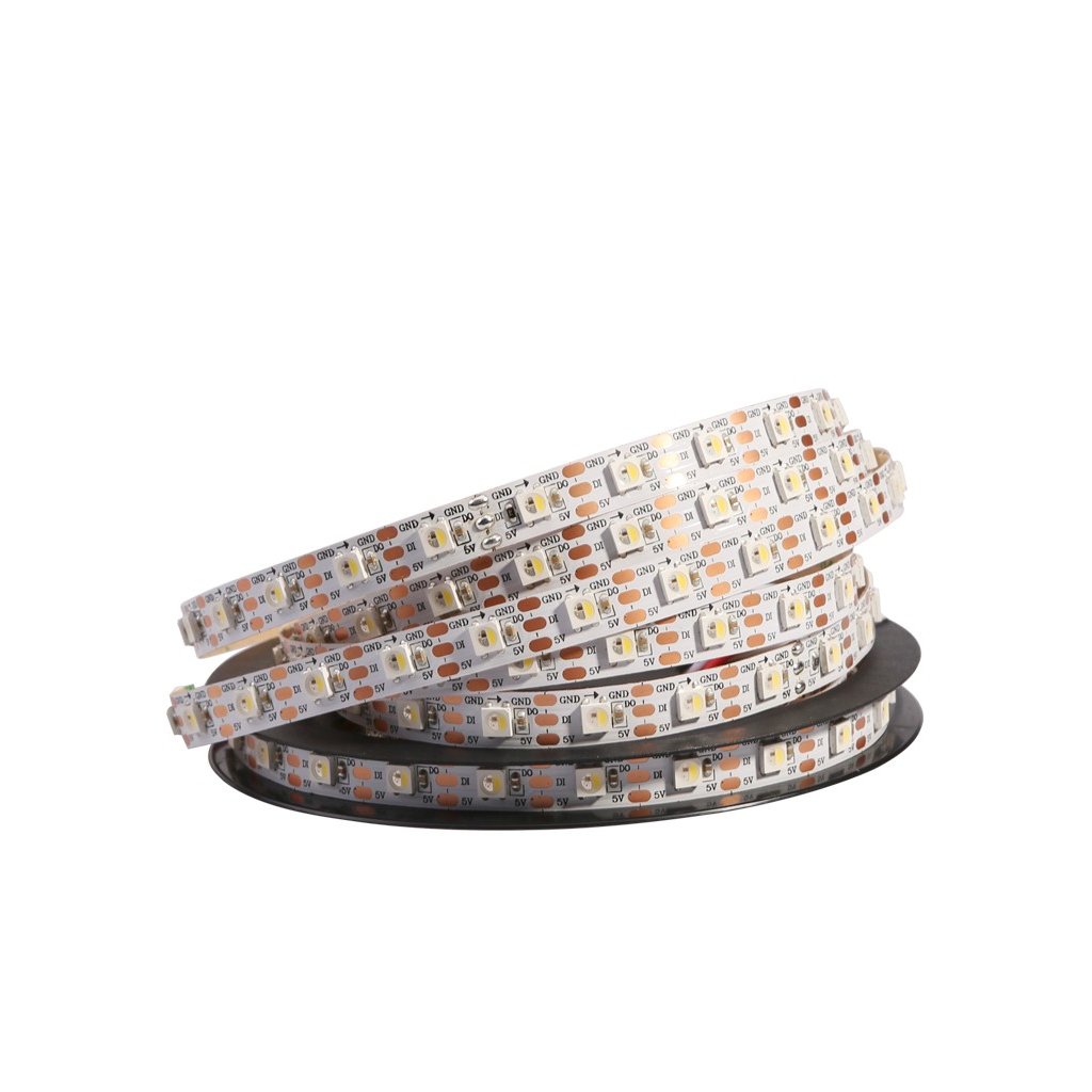 Digitální RGBW pásek 5V řízený čipem SK6812, který je vestavěn přímo do diody. Pásek je osazen 96LED/m pro extra plynulé světelné efekty. Příkon pásky je 28,8W/m.Každá dioda je samostatně řiditelná: 1 LED = 1 pixelSK6812 je nový čip, který nahrazuje zastaralé a poněkud nestabilní čipy WS2812b a APA104. Vyniká svoji stabilitou a odolností a především pak možností řídit každou diodu samostatně. K ovládání těchto pásků slouží speciální ovladače nebo PC software v kombinaci s řídící jednotkou. Pásek lze rovněž řídit ovladači pro pásky s čipy WS2812b nebo APA104.Klíčové vlastnosti:možnost řídit každou diodu samostatněextra plynulé světelné efektynapájení DC 5Vpříkon 28,8W/m a 96LED/mpásek lze zakrátit každou diodukvalitní integrovaný řídící čip SK6812 Tipy a rady:Před finálním nalepením si pásek otestujte "na nečisto" a až po otestování funkčnosti teprve instalujte na určené místo