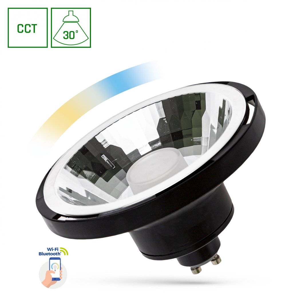 LED AR111 GU10 SMD 230V 10W ČERNÁ 30° CCT+DIMM WI-FI/BT SPECTRUM SMART