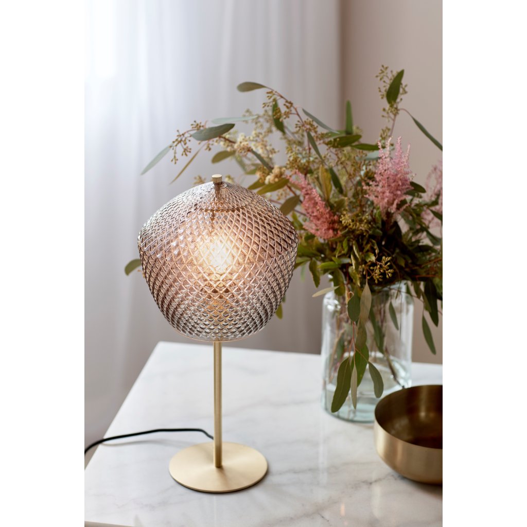 Elegantní stolní světlo z broušeného skla s diamantovým vzorem a prvkem mosazi - Nordlux Orbiform.