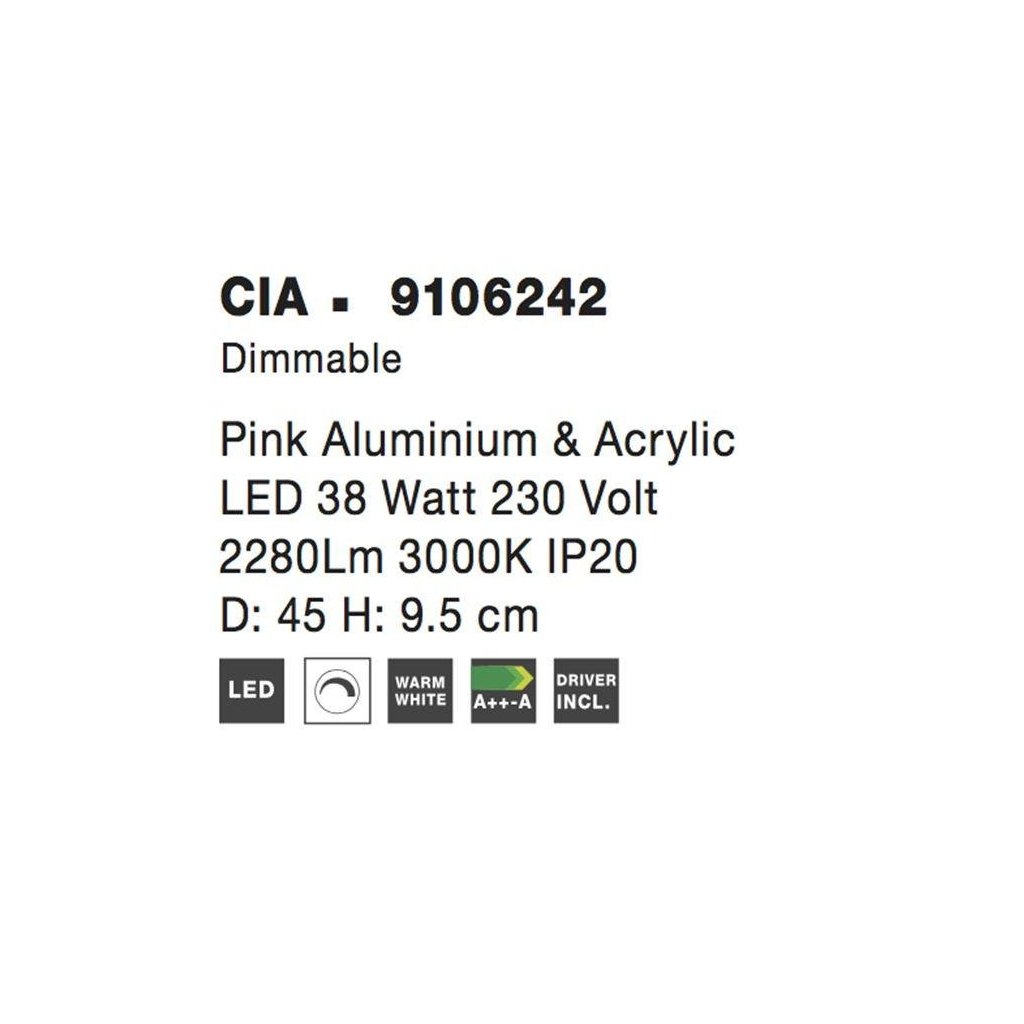 Stropní svítidlo CIA růžový hliník a akryl LED 38W 230V 3000K IP20 stmívatelné - NOVA LUCE