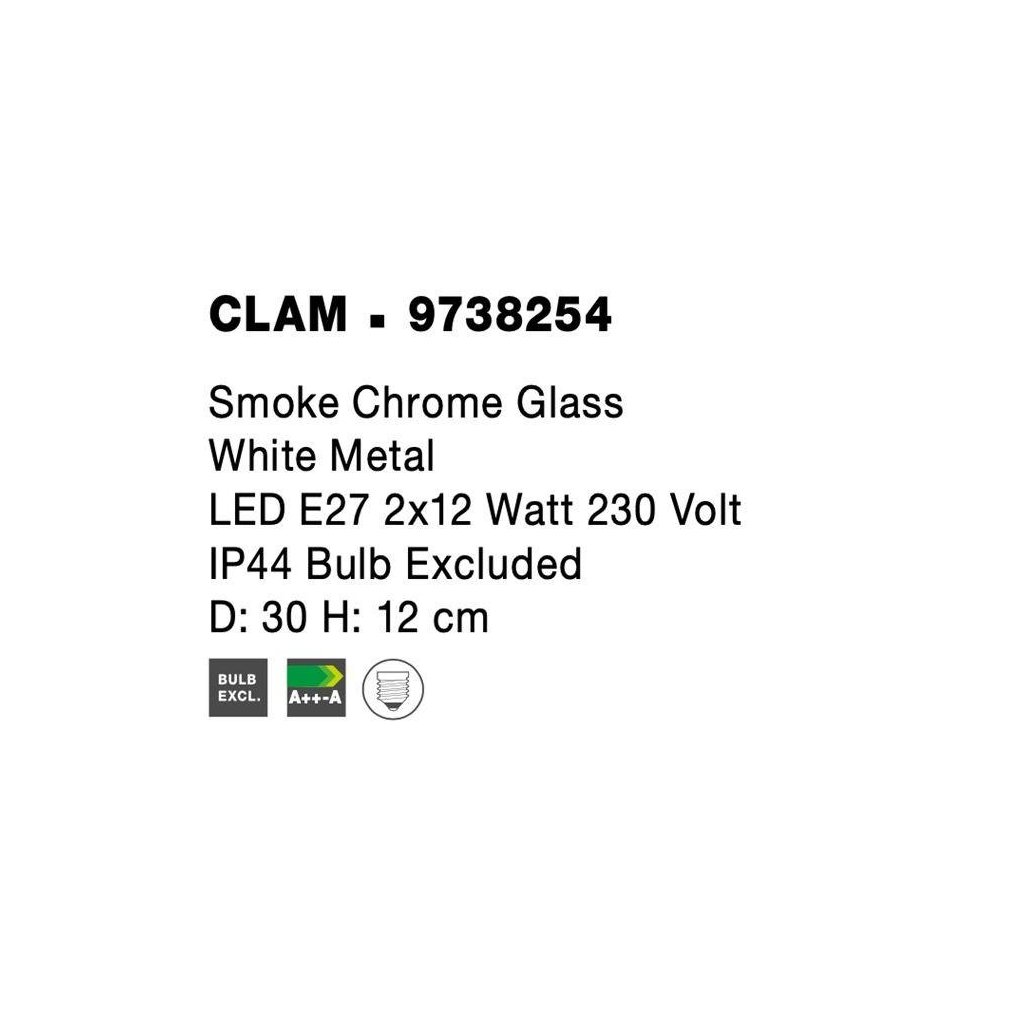 Stropní svítidlo CLAM kouřové chromové sklo bílý kov E27 2x12W 230V IP44 bez žárovky - NOVA LUCE