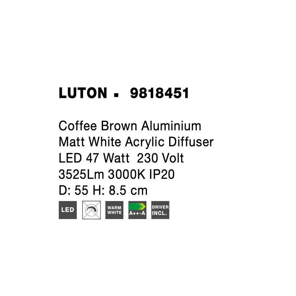 Stropní svítidlo LUTON kávově hnědý hliník matný bílý akrylový difuzor LED 47W 230V 3000K IP20 - NOVA LUCE
