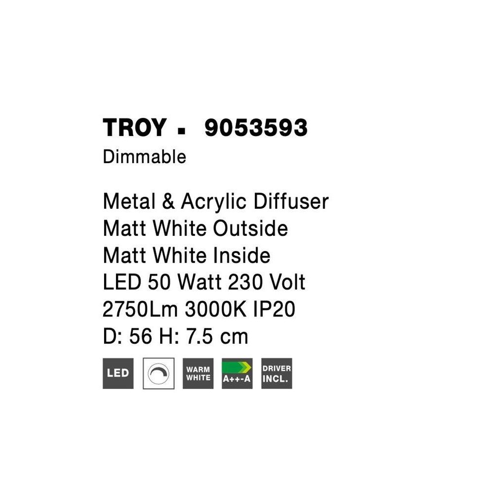 Stropní svítidlo TROY kov a akrylový difuzor matná bílá LED 50W 230V 3000K IP20 stmívatelné - NOVA LUCE
