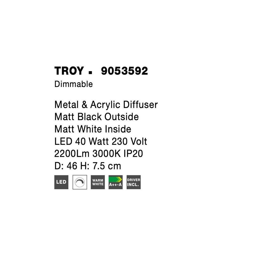 Stropní svítidlo TROY kov a akrylový difuzor matná černá zvenku matná bílá uvnitř LED 40W 230V 3000K IP20 stmívatelné - NOVA LUCE