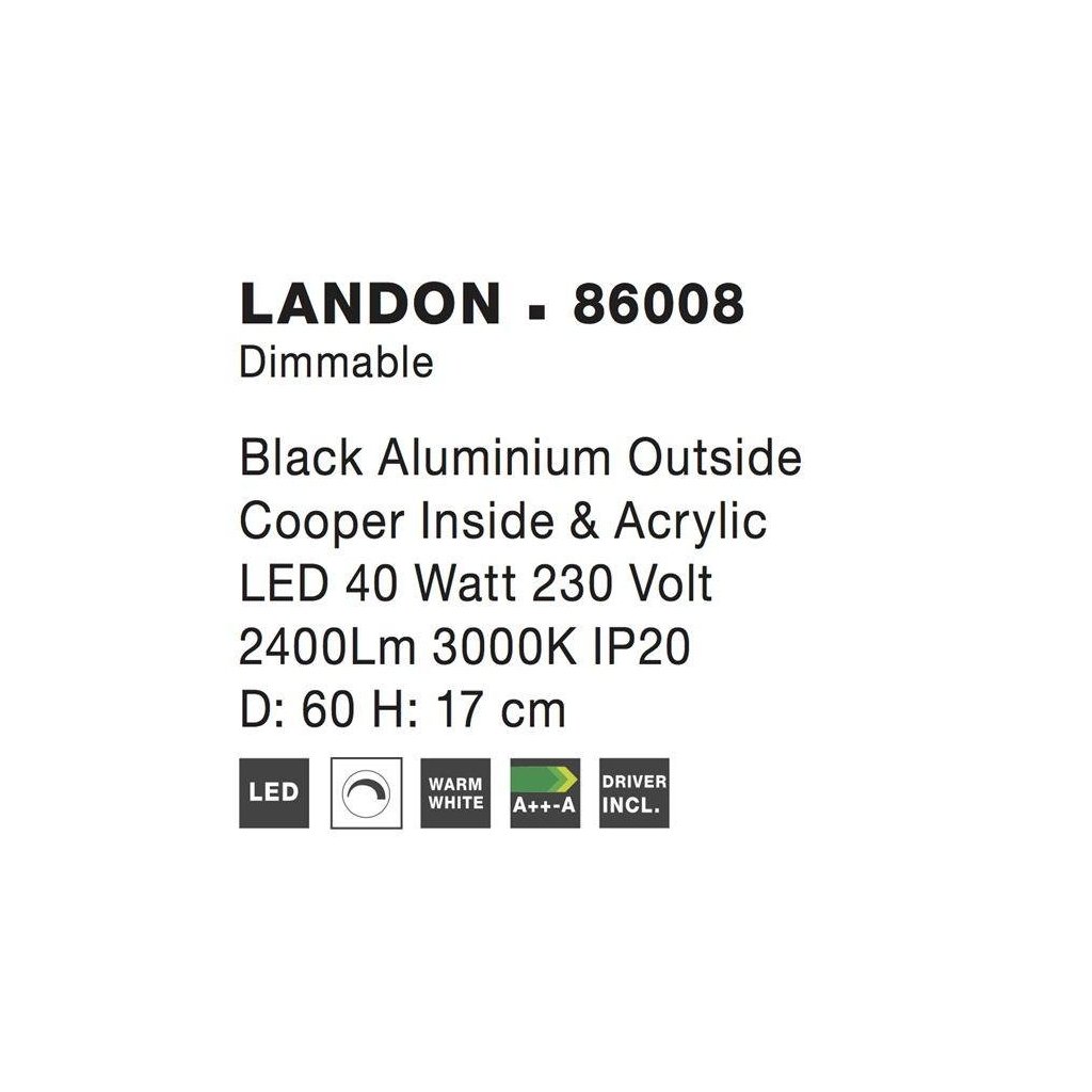 VÝPRODEJ AKCE - Stropní svítidlo LANDON černý hliník zvenku měď uvnitř a akryl LED 40W 3000K IP20 stmívatelné - NOVA LUCE