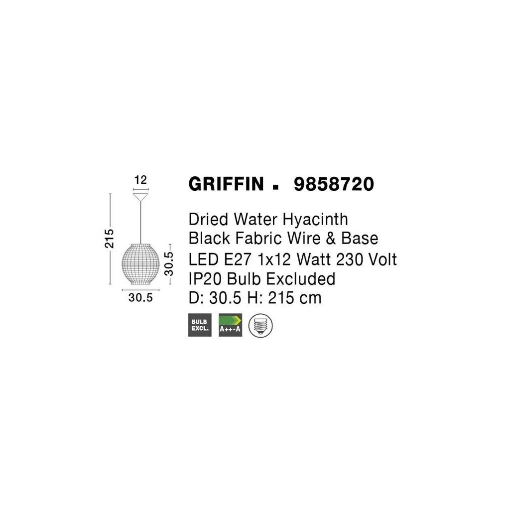VÝPRODEJ NEPRODEJNÉ, NEKVALITNÍ - Závěsné svítidlo GRIFFIN sušený vodní hyacint černý kabel E27 1x12W 230V IP20 bez žárovky - NOVA LUCE