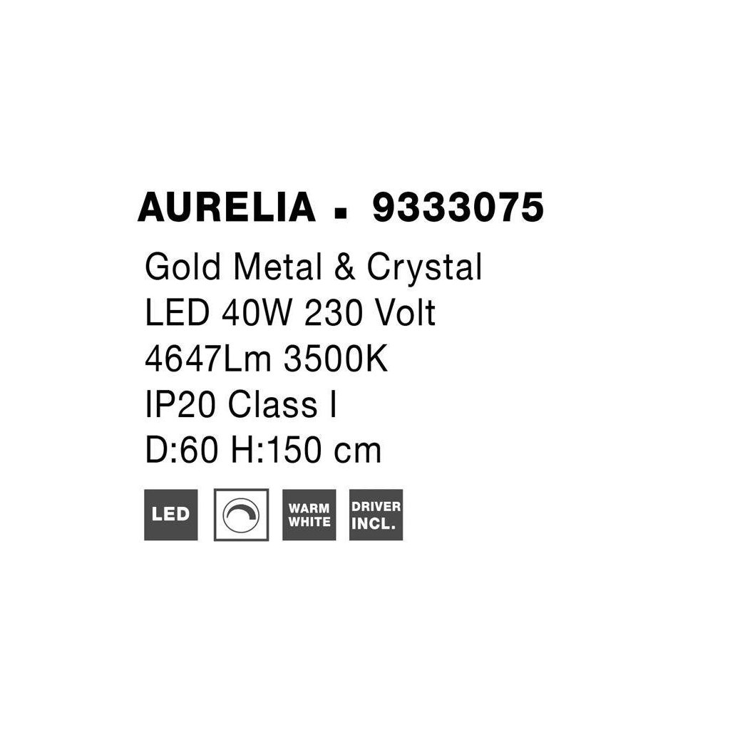 Závěsné svítidlo AURELIA zlatý kov a křišťál LED 40W 230V 3500K IP20 stmívatelné - NOVA LUCE