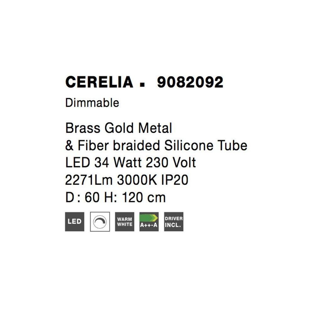 Závěsné svítidlo CERELIA mosazný zlatý kov a silikonová trubice LED 34W 230V 3000K IP20 stmívatelné - NOVA LUCE