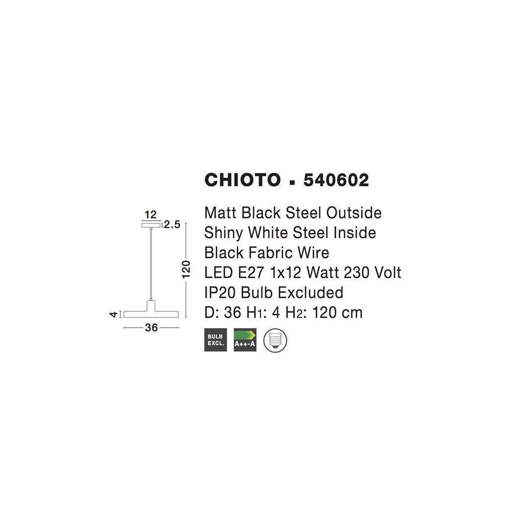 Závěsné svítidlo CHIOTO matná černá ocel zvenku lesklá bílá ocel uvnitř E27 1x12W IP20 bez žárovky - NOVA LUCE