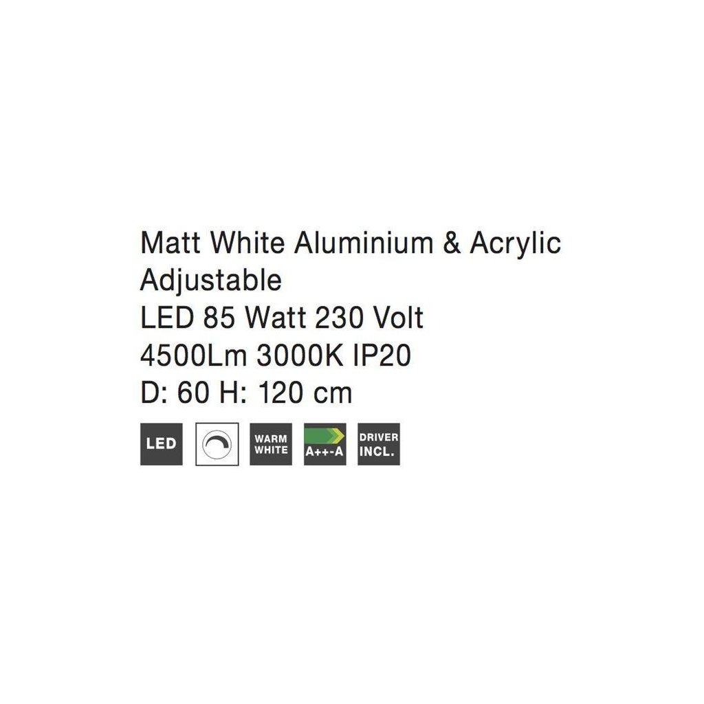 Závěsné svítidlo DEA matný bílý hliník a akryl nastavitelné LED 85W 3000K IP20 stmívatelné - NOVA LUCE
