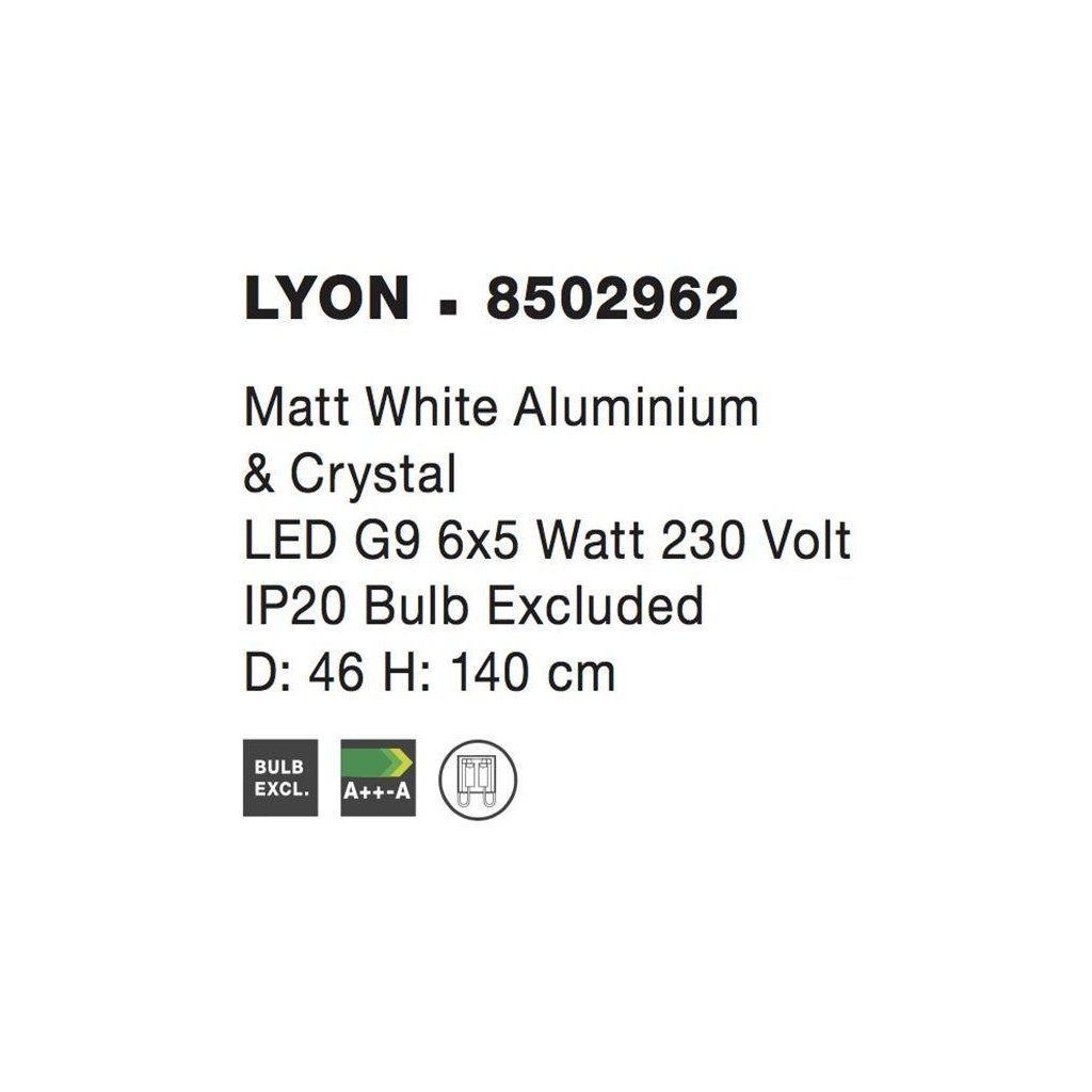 Závěsné svítidlo LYON matný bílý hliník a křišťál G9 6x5W 230V IP20 bez žárovky - NOVA LUCE