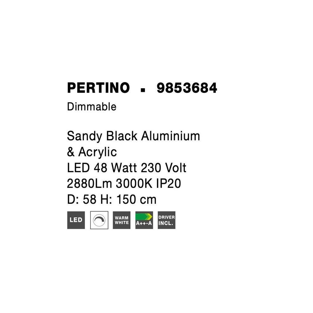 Závěsné svítidlo PERTINO černý hliník a akryl LED 48W 230V 3000K IP20 stmívatelné - NOVA LUCE