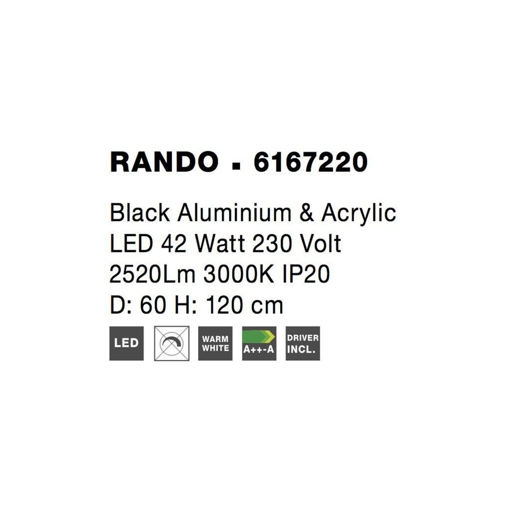 Závěsné svítidlo RANDO černý hliník a akryl LED 42W 230V 3000K IP20 - NOVA LUCE