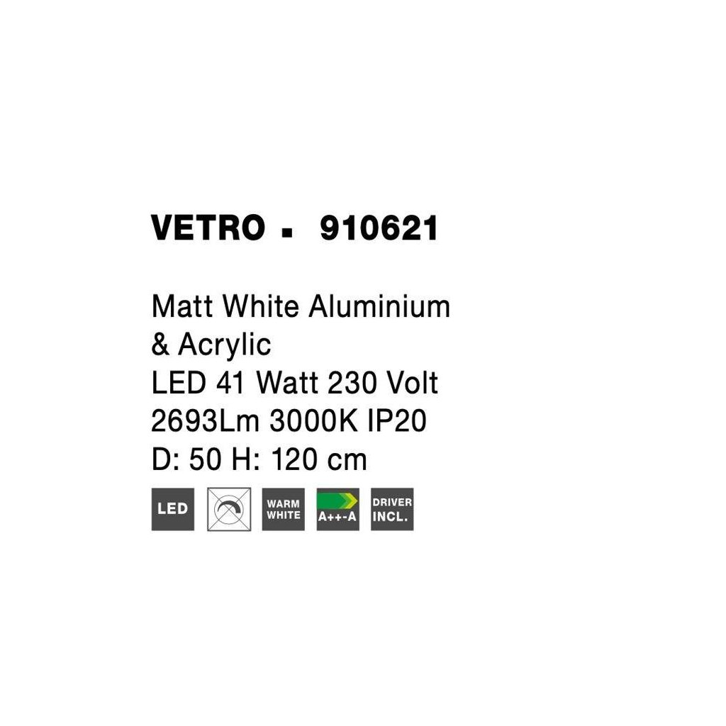 Závěsné svítidlo VETRO matný bílý hliník a akryl LED 41W 230V 3000K IP20 - NOVA LUCE